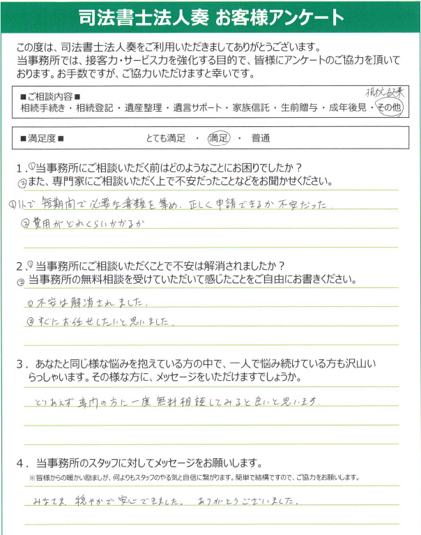 1人で短期間で必要な書類を集め、正しく申請できるか不安だった。